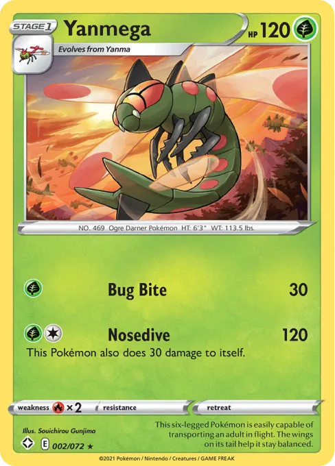 This six-legged Pokémon is easily capable of transporting an adult in flight. The wings on its tail help it stay balanced.