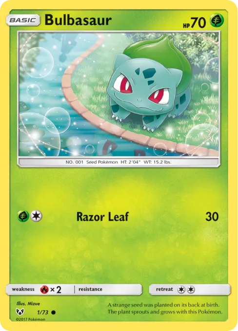 A strange seed was planted on its back at birth. The plant sprouts and grows with this Pokémon.