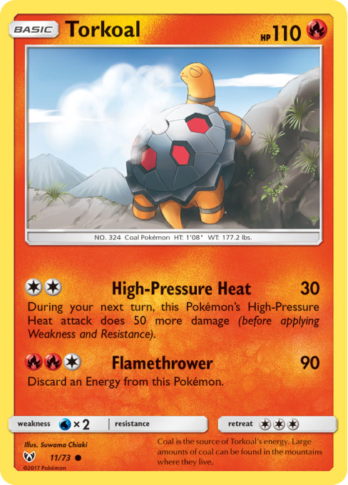 Coal is the source of Torkoal's energy. Large amounts of coal can be found in the mountains where they live.