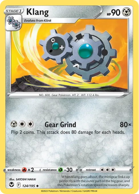 When Klang goes all out, the minigear links up perfectly with the outer part of the big gear, and this Pokémon's rotation speed increases sharply.