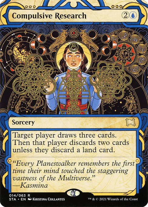 Target player draws three cards. Then that player discards two cards unless they discard a land card.