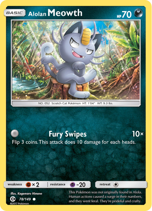 This Pokémon was not originally found in Alola. Human actions caused a surge in their numbers, and they went feral. They're prideful and crafty.