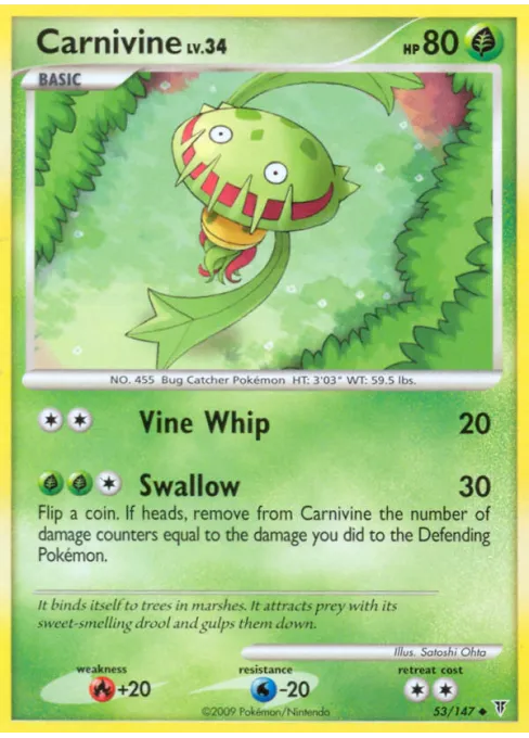 Flip a coin. If heads, remove from Carnivine the number of damage counters equal to the damage you did to the Defending Pokémon.
