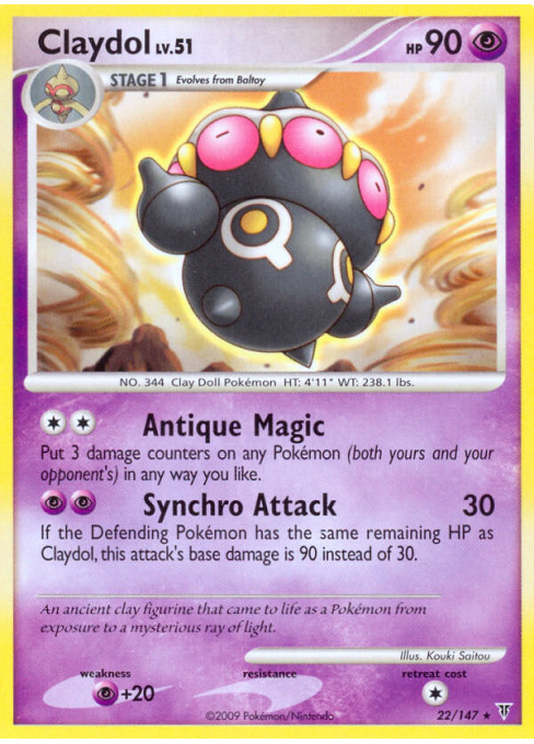 An ancient clay figurine that came to life as a Pokémon from exposure to a mysterious ray of light.