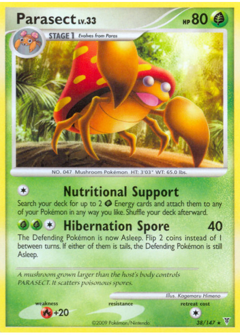A mushroom grown larger than the host's body controls Parasect. It scatters poisonous spores.