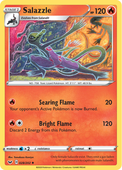 Only female Salazzle exist. They emit a gas laden with pheromones to captivate male Salandit.