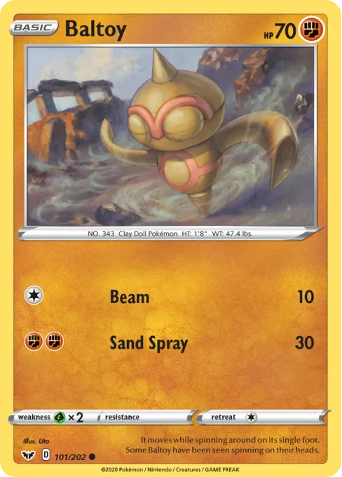 It moves while spinning around on its single foot. Some Baltoy have been seen spinning on their heads.
