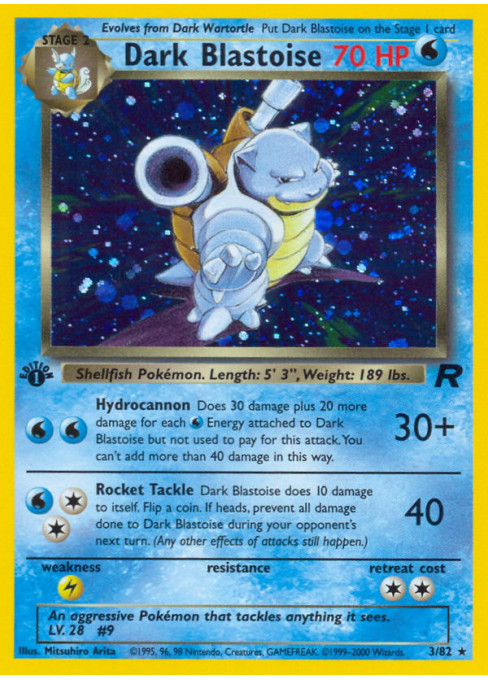 Dark Blastoise does 10 damage to itself. Flip a coin. If heads, prevent all damage done to Dark Blastoise during your opponent's next turn. (Any other effects of attacks still happen.)