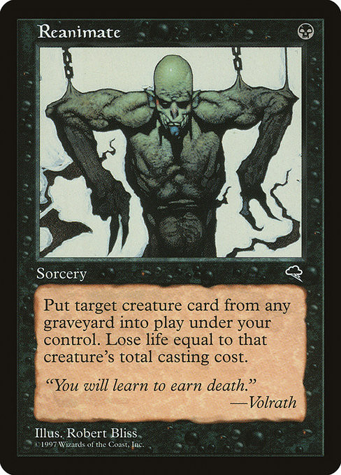 Put target creature card from a graveyard onto the battlefield under your control. You lose life equal to its mana value.