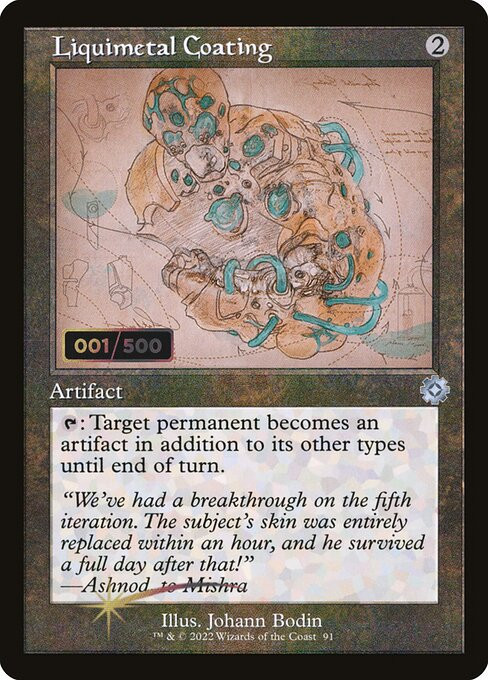 : Target permanent becomes an artifact in addition to its other types until end of turn.