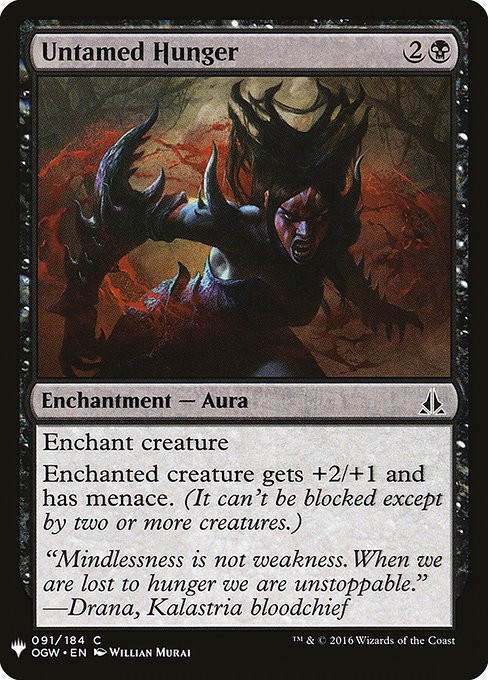Enchanted creature gets +2/+1 and has menace. (It can't be blocked except by two or more creatures.)