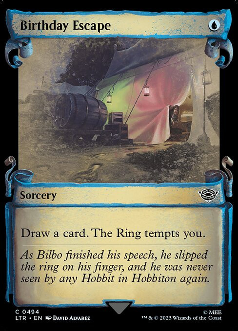 "As Bilbo finished his speech, he slipped the ring on his finger, and he was never seen by any Hobbit in Hobbiton again."