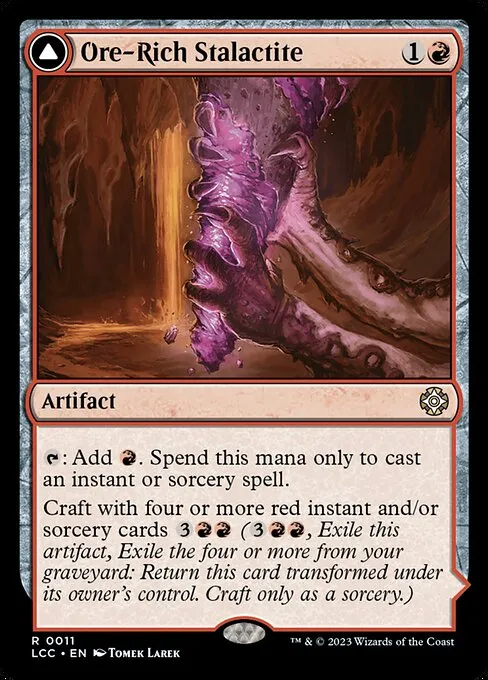 Craft with four or more red instant and/or sorcery cards (, Exile this artifact, Exile the four or more from your graveyard: Return this card transformed under its owner's control. Craft only as a sorcery.)