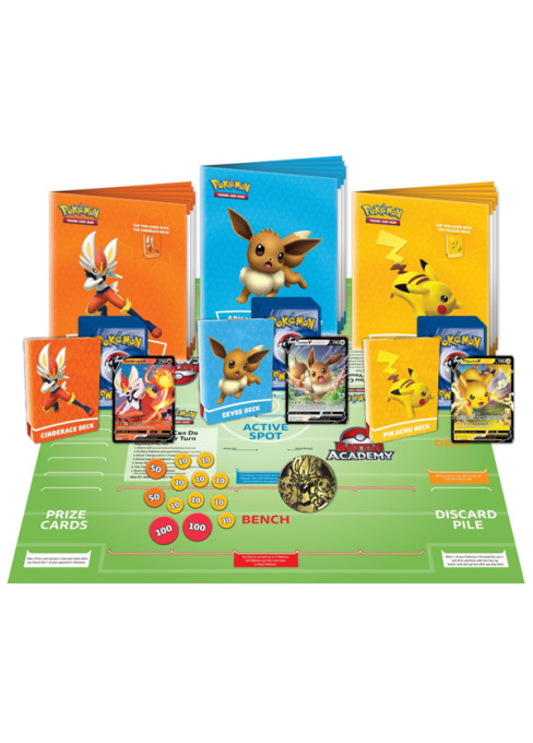 V Battle akademii jsou pro tebe připraveny tři překonstruované Pokémon balíčky určené ihned ke hraní. Nezapomeň, že všechny tři balíčky zároveň obsahují silné Pokémony V, kteří ti propůjčí sílu, kterou bude potřeba chytře využít ve tvých prvních zápasech! Na výběr máš Pokémony Pikachu V, Eevee V a Cinderace V, tak na co ještě čekáš?