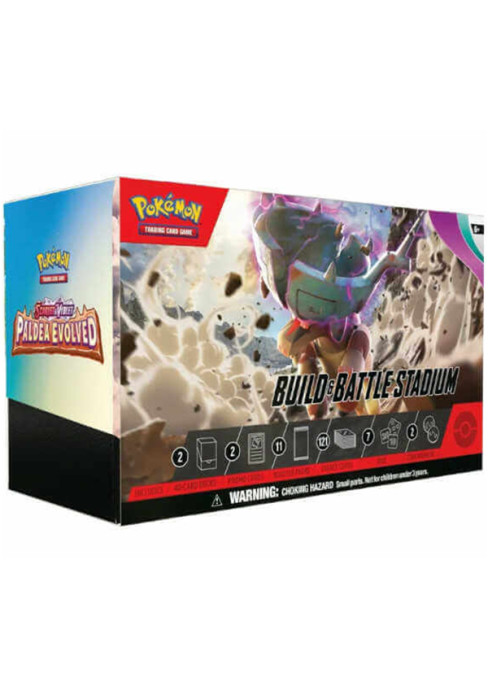 Zahrajte si zábavný herní formát „postav a hrej“! Speciální produkt Pokémon Paldea Evolved - Build & Battle Stadium obsahuje vše potřebné pro to, abyste si s kamarádem postavili herní balíček a zahráli si spolu o doplňkové Boostery Pokémon TCG, které se v balení také nachází. Tento produkt je určený pro menší domácí nebo rodinný turnaj v Pokémon TCG na způsob "Build & Battle".
