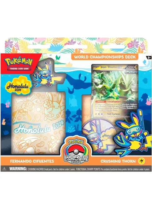 Pokud chcete začít hrát Pokémon TCG na turnajové úrovni a hledáte silný balíček se silnými pokémony, doporučujeme World Championship Deck 2024 Honolulu – Iron Thorns– Fernando Cifuentes. Jedná se o speciální herní balíček, který je předem připravený k okamžitému hraní, a to na turnajové úrovni! Balíček je věrnou kopií decku se kterým Fernando Cifuentes zvítězil na mistrovství světa v Honolulu 2024 v divizi Masters.