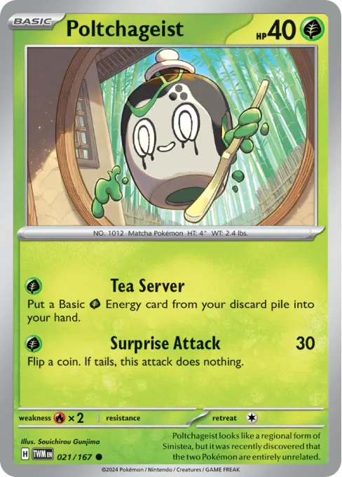 Poltchageist looks like a regional form of Sinistea, but it was recently discovered that the two Pokémon are entirely unrelated.