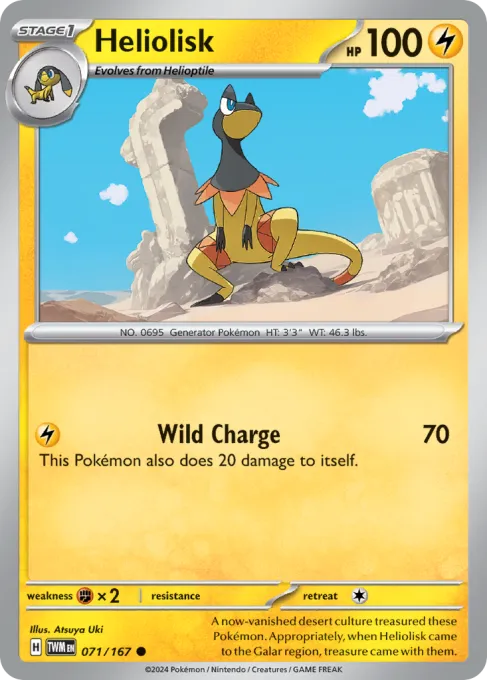 A now-vanished desert culture treasured these Pokémon. Appropriately, when Heliolisk came to the Galar region, treasure came with them.