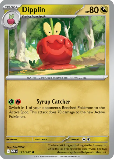 The head sticking out belongs to the fore-wyrm, while the tail belongs to the core-wyrm. The two share one apple and help each other out.