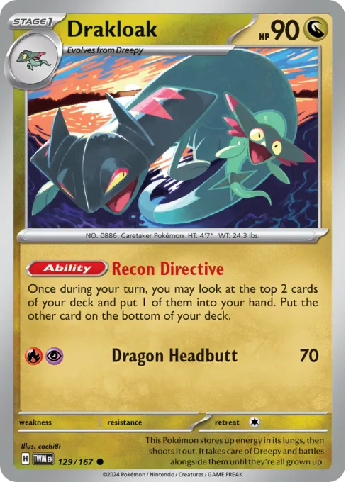 This Pokémon stores up energy in its lungs, then shoots it out. It takes care of Dreepy and battles alongside them until they're all grown up.
