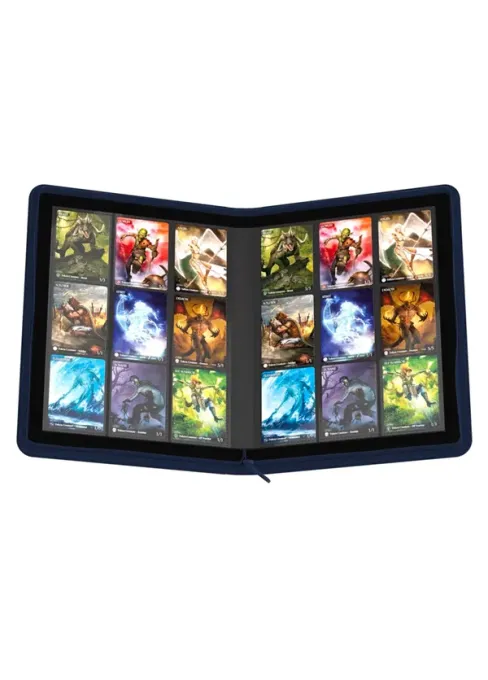 Desky alba jsou pevné s koženým povrchem XenoSkin, který má skvělé protiskluzové vlastnosti a je navíc umyvatelný. S deskami se tak dobře manipuluje a je menší riziko vysmeknutí z rukou. Album má zavírání na zip, takže nabízí tu nejlepší možnou ochranu samotného obsahu. Uvnitř najdete 20 všitých stránek po 9 kapsách z každé strany, album tak pojme minimálně 360 obalených karet. Vkládání karet je z boku (sideloading) a kapsy pojmou i double-sleeved karty. Je navrženo na standardní rozměr karet jako jsou například Magic the Gathering, Pokémon, F&B, Lorcana One Piece a další.