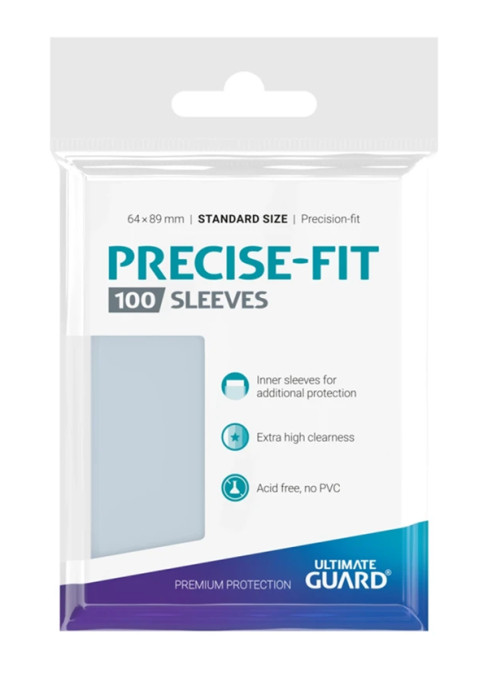 V balení najdete 100 kusů oboustranně průhledných, přesně sedících obalů na vaše karty. Nejprve tak kartu obalíte do Ultimate Guard Precise-Fit obalu a teprve pak jí vložíte do klasického obalu. Tímto způsobem zajistíte vašim kartám nejlepší možnou ochranu. Hodí se na karty standardních rozměrů jako jsou například: Magic: the Gathering, Pokémon, Lorcana, Flesh & Blood a další.