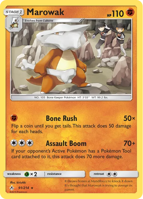 It throws bones at Mandibuzz to knock it down. It's thought that Marowak is trying to avenge its parent.