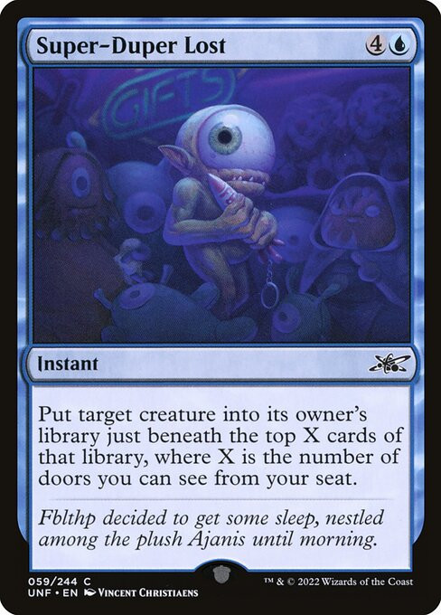 Put target creature into its owner's library just beneath the top X cards of that library, where X is the number of doors you can see from your seat.