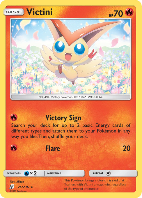 This Pokémon brings victory. It is said that Trainers with Victini always win, regardless of the type of encounter.
