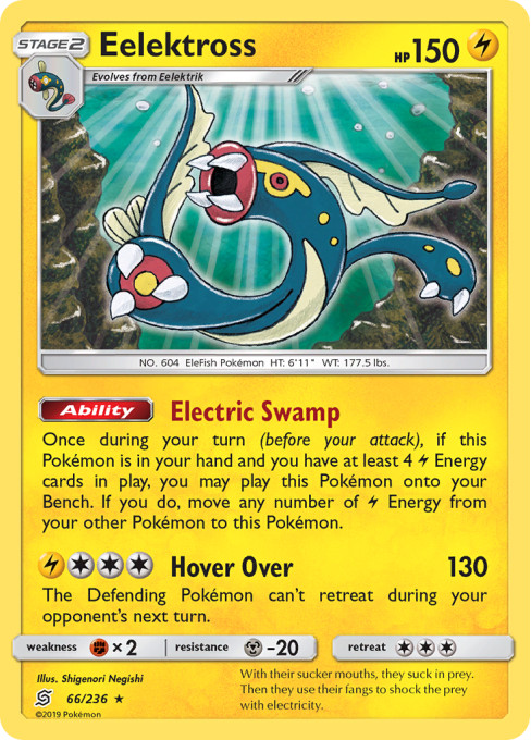 Once during your turn (before your attack), if this Pokémon is in your hand and you have at least 4 Lightning Energy cards in play, you may play this Pokémon onto your Bench. If you do, move any number of Lightning Energy from your other Pokémon to this Pokémon.