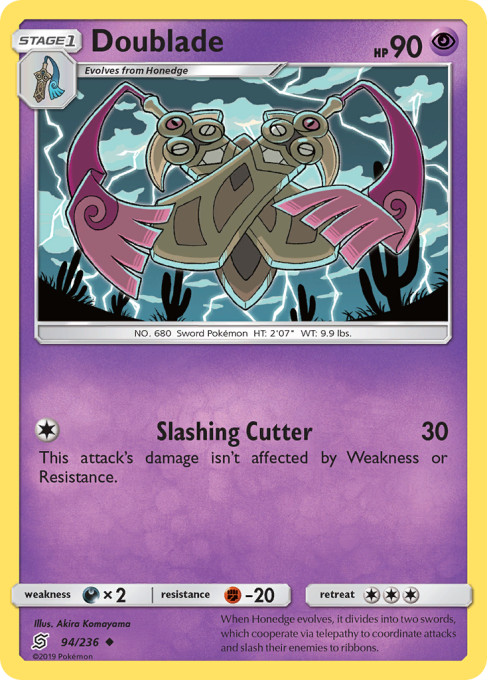 When Honedge evolves, it divides into two swords, which cooperate via telepathy to coordinate attacks and slash their enemies to ribbons.