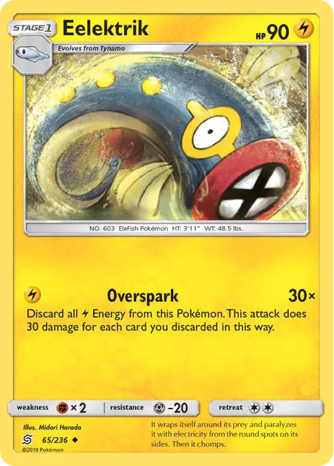 It wraps itself around its prey and paralyzes it with electricity from the round spots on its sides. Then it chomps.