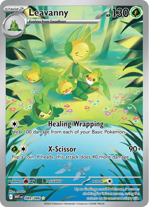 Upon finding a small Pokémon, it weaves clothing for it from leaves, using the cutters on its arms and sticky silk.