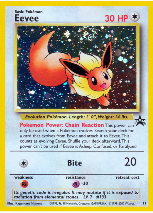 This power can only be used when a Pokémon evolves. Search your deck for a card that evolves from Eevee and attach it to Eevee. This counts as evolving Eevee. Shuffle your deck afterward. This power can't be used if Eevee is Asleep, Confused, or Paralyzed.
