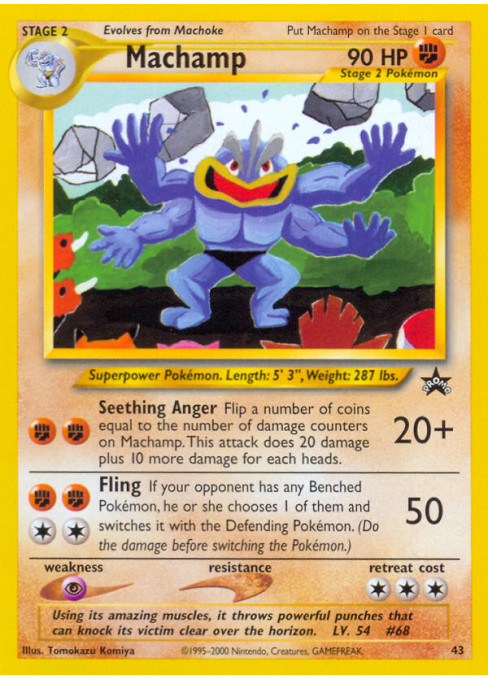 Flip a number of coins equal to the number of damage counters on Machamp. This attack does 20 damage plus 10 more damage for each heads.