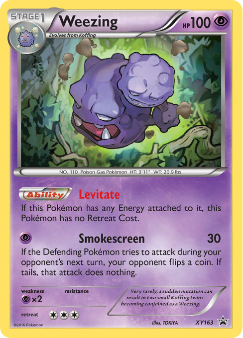 Very rarely, a sudden mutation can result in two small Koffing twins becoming conjoined as a Weezing.